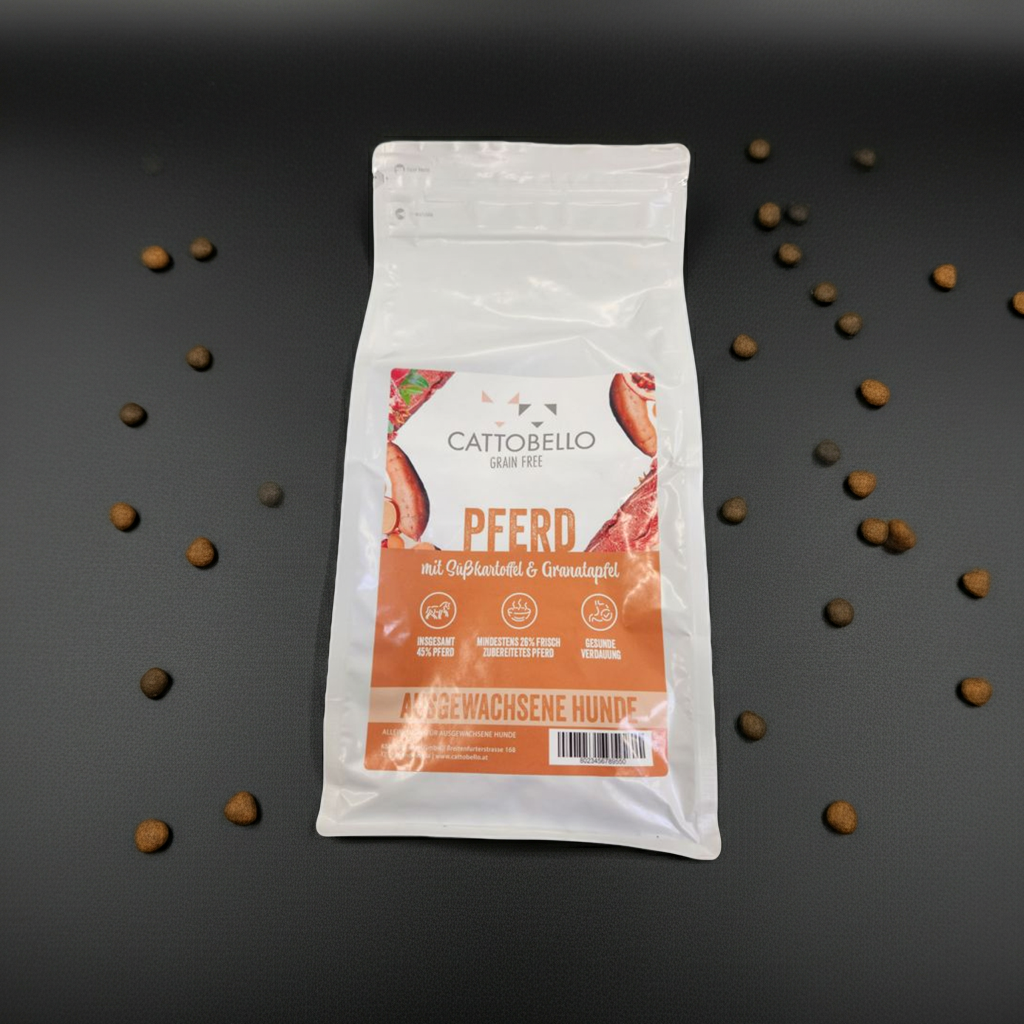 Wenn dein Hund empfindlich reagiert oder einfach beste Qualität verdient, ist dieses Futter eine großartige Wahl. Pferd gilt als besonders gut verträgliche Proteinquelle, liefert wichtige Aminosäuren und ist ideal für Allergiker oder Hunde mit sensibler Verdauung.